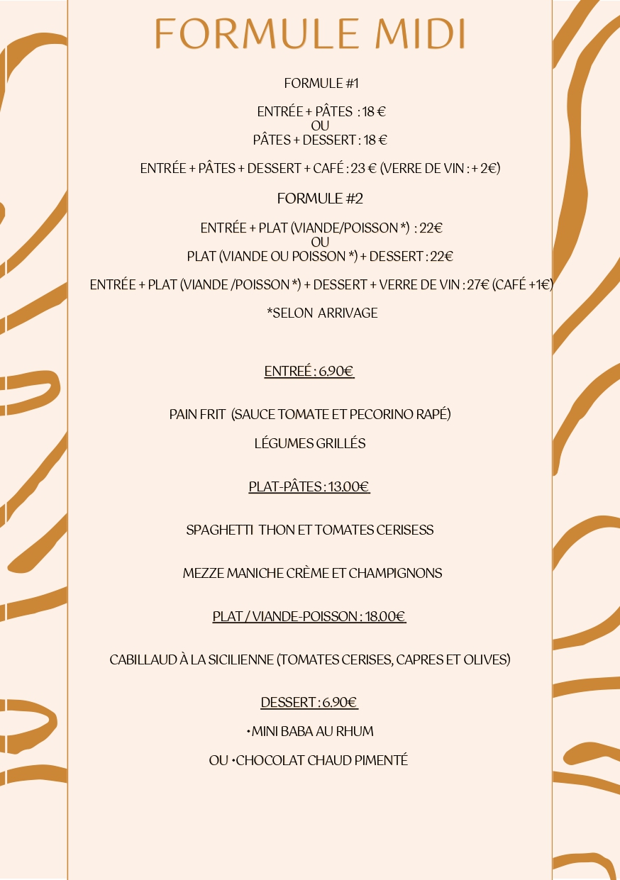 MENU DE LA SEMAINE